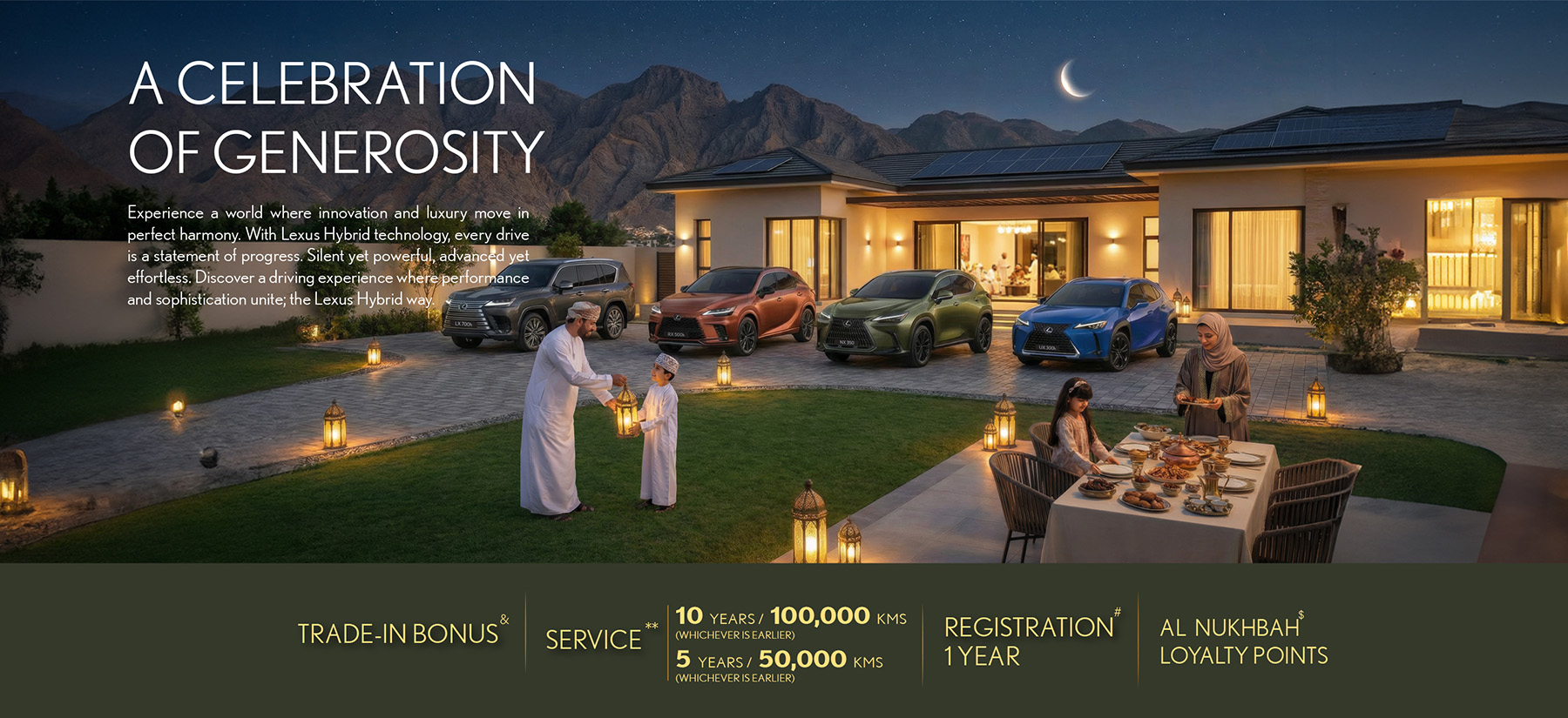 & Trade-in Bonus: Exchange vehicles must be legally owned, Oman-registered, and supported by valid documentation. Non-GSO compliant imports or vehicles with incomplete or disputed documents are ineligible. All exchanges are subject to inspection and final approval by Best Cars. An OMR 500 trade-in incentive is applied only as a discount on the new Lexus invoice, in addition to the assessed value, and is non-cashable and non-transferable. Final trade-in value is determined solely by Best Cars. For more detail contact showroom staff.